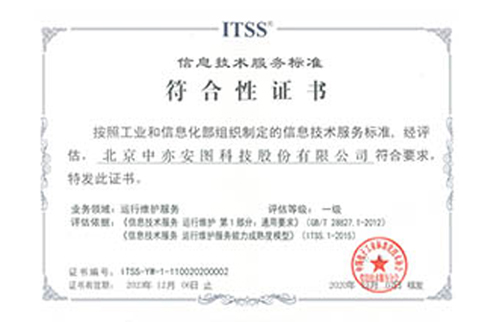 信息技術(shù)服務(wù)運行維護(hù)標(biāo)準(zhǔn)(ITSS)符合性證書
